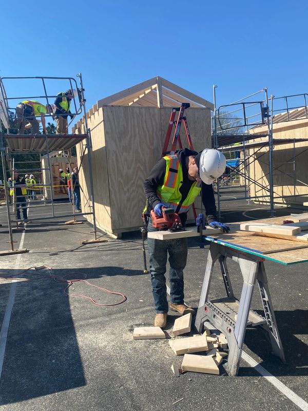 Our S.H.E.D. competition focuses on hands on carpentry work with high school students. Teams comprised of 6 students, and mentored by local General and Specialty Contractors, are tasked to build a SHED up to code and spec based on plans provided to the classroom prior to the competition.